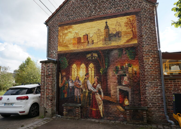 la fresque du Château d’Havré à Mons, une œuvre qui met en lumière l’histoire et le patrimoine local. Plongez dans un voyage entre passé et présent, valorisant la mémoire et la richesse culturelle de la ville.