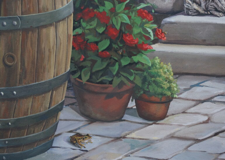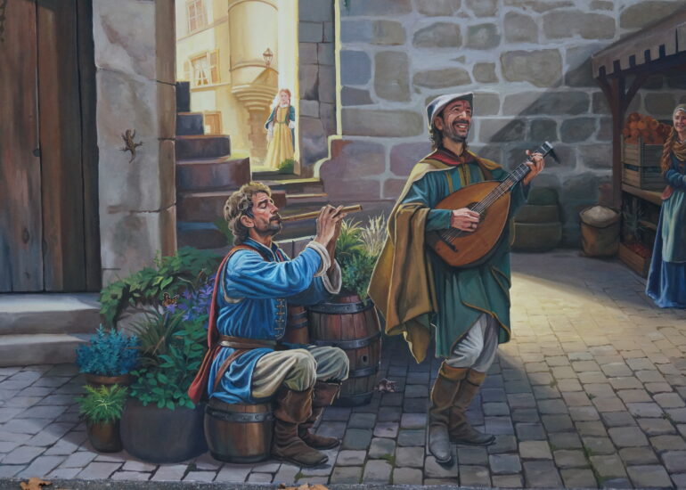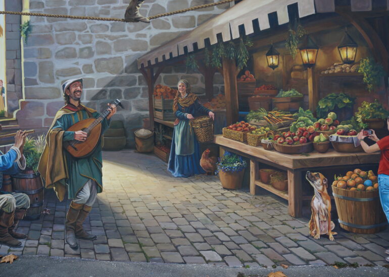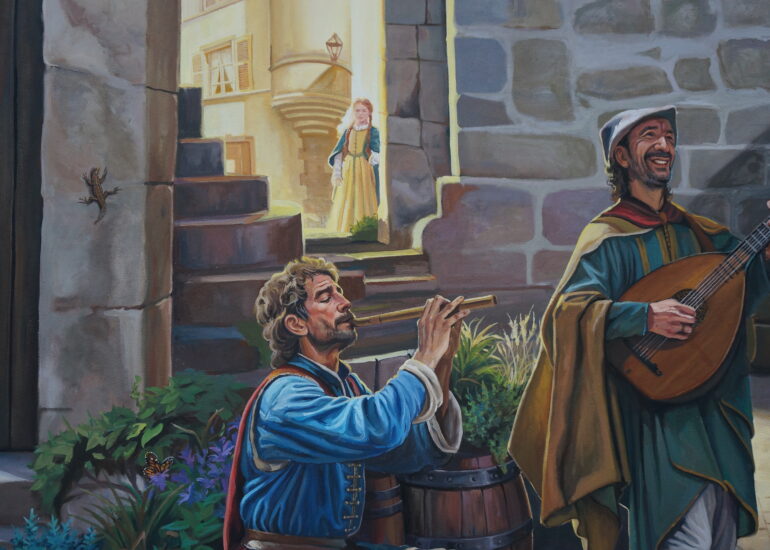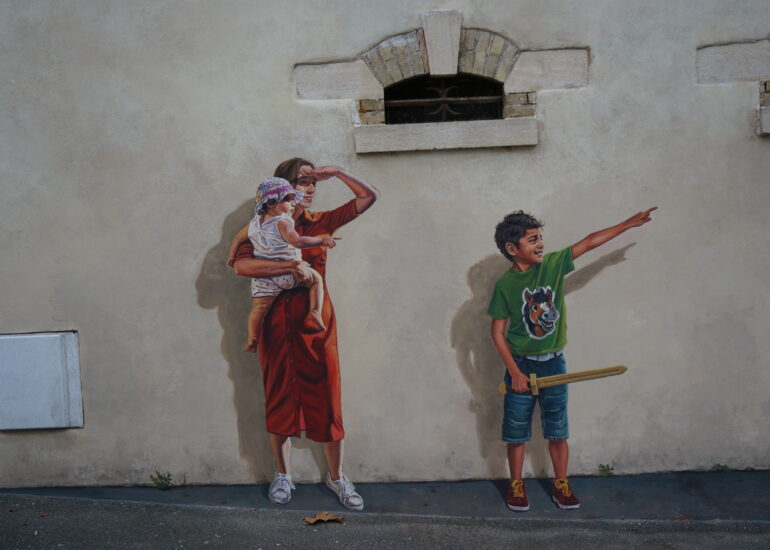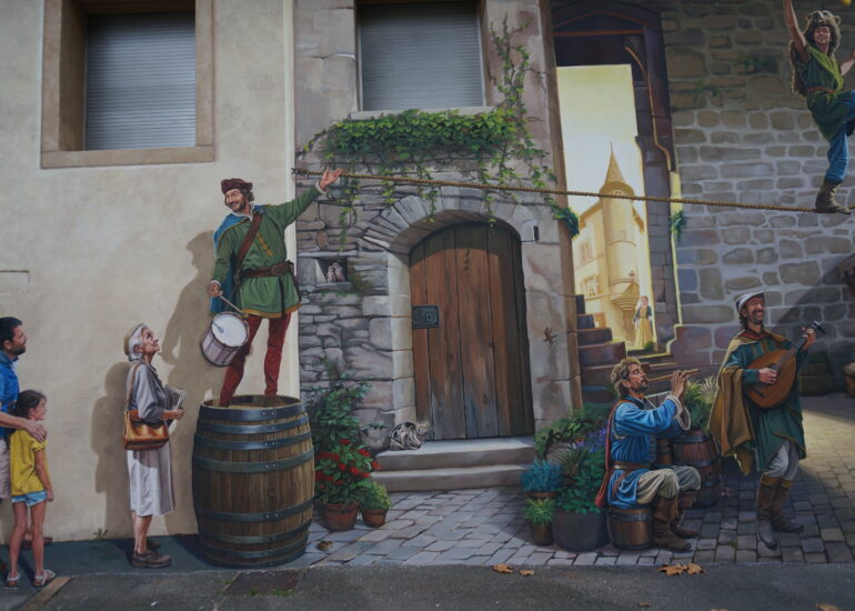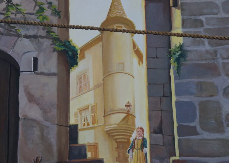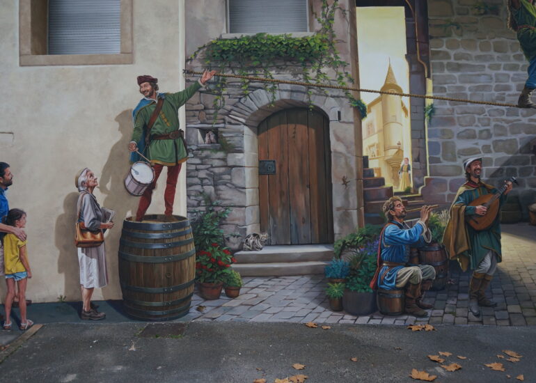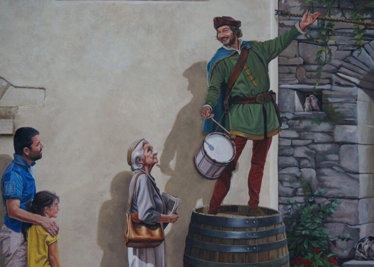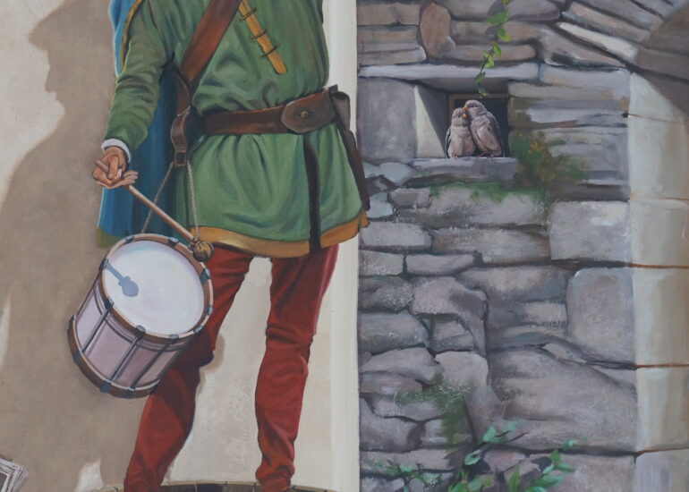 Le Baboin est une figure historique et légendaire associée à Chazay d’Azergues, souvent décrite comme un chevalier ou seigneur local. À travers cette fresque, nous avons voulu redonner vie à ce personnage fascinant, en le représentant dans un univers qui évoque autant la réalité historique que le folklore qui l’entoure.