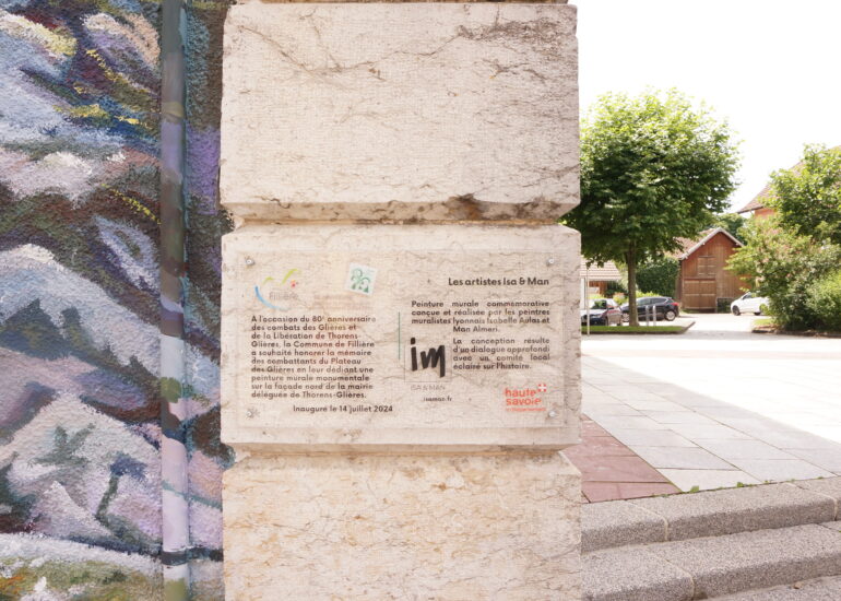 Au cœur de Thorens-Glières, nous avons réalisé une fresque monumentale qui vient illuminer le patrimoine du village, rendant hommage à un moment clé de son histoire. Située au centre du village, cette œuvre commémorative célèbre la mémoire des maquisards du Plateau des Glières, ces résistants qui ont joué un rôle essentiel dans la libération de Thorens-Glières pendant la Seconde Guerre mondiale.
